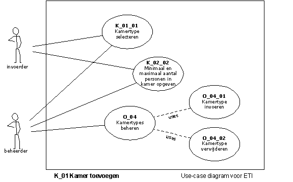 In de faciliteit-tabel staan alle faciliteiten die een kamer kan hebben. In de kamerFaciliteit-tabel wordt dan vervolgens een bepaalde kamer gekoppeld aan een faciliteit. Op deze manier is het heel gemakkelijk om een faciliteit die nog niet bestond, toe te voegen aan bestaande faciliteiten en te koppelen aan een bestaande kamer.