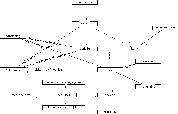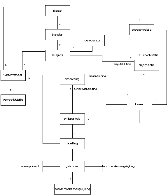 Bij aanvang van het Technisch Ontwerp gingen John van Terheijden en ik aan de slag met het klassediagram. Dit bleek niet zo een eenvoudige klus. Alleen met behulp van de UML-technieken is het ons niet gelukt. Om tot goede associaties te komen hebben we na het concept-klassediagram, eerst de database uitgedacht. Ook dit bleek geen eenvoudige opgave. We hebben een aantal 'denksessies' gehad waarin met samen met onze projectleiders het gegevensmodel hebben uitgedacht. Maar omdat alle reisgidsen erin moesten passen was dit zeker niet eenvoudig. Nadat we het databaseontwerp af hadden, hebben we de tabelassociaties vergeleken met die uit het concept-klassediagram en zodoende het definitieve klassediagram gemaakt. De database bleek maar op één manier te kunnen, terwijl de klasse associaties ook nog op een andere manier mogelijk waren. Doormiddel van het databaseontwerp hebben we naar mijn mening een goed klassediagram opgeleverd. Op deze manier was ook gelijk het databaseontwerp gemaakt met een geheel frisse blik. Het databasemodel is zo ontworpen dat alle modules, genoemd in het Functioneel Ontwerp, bewaard konden worden in de database.