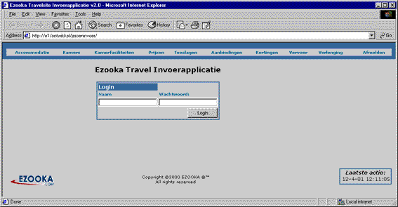 De invoerapplicatie moet een Web-applicatie worden, zodat vanaf een willekeurige werkplek (bijv. thuiswerker) reizen ingevoerd kunnen worden. Ezooka.com heeft als doel de invoerapplicatie 1 augustus 2001 online te hebben, zodat begonnen kan worden met het invoeren van de winterreizen.
